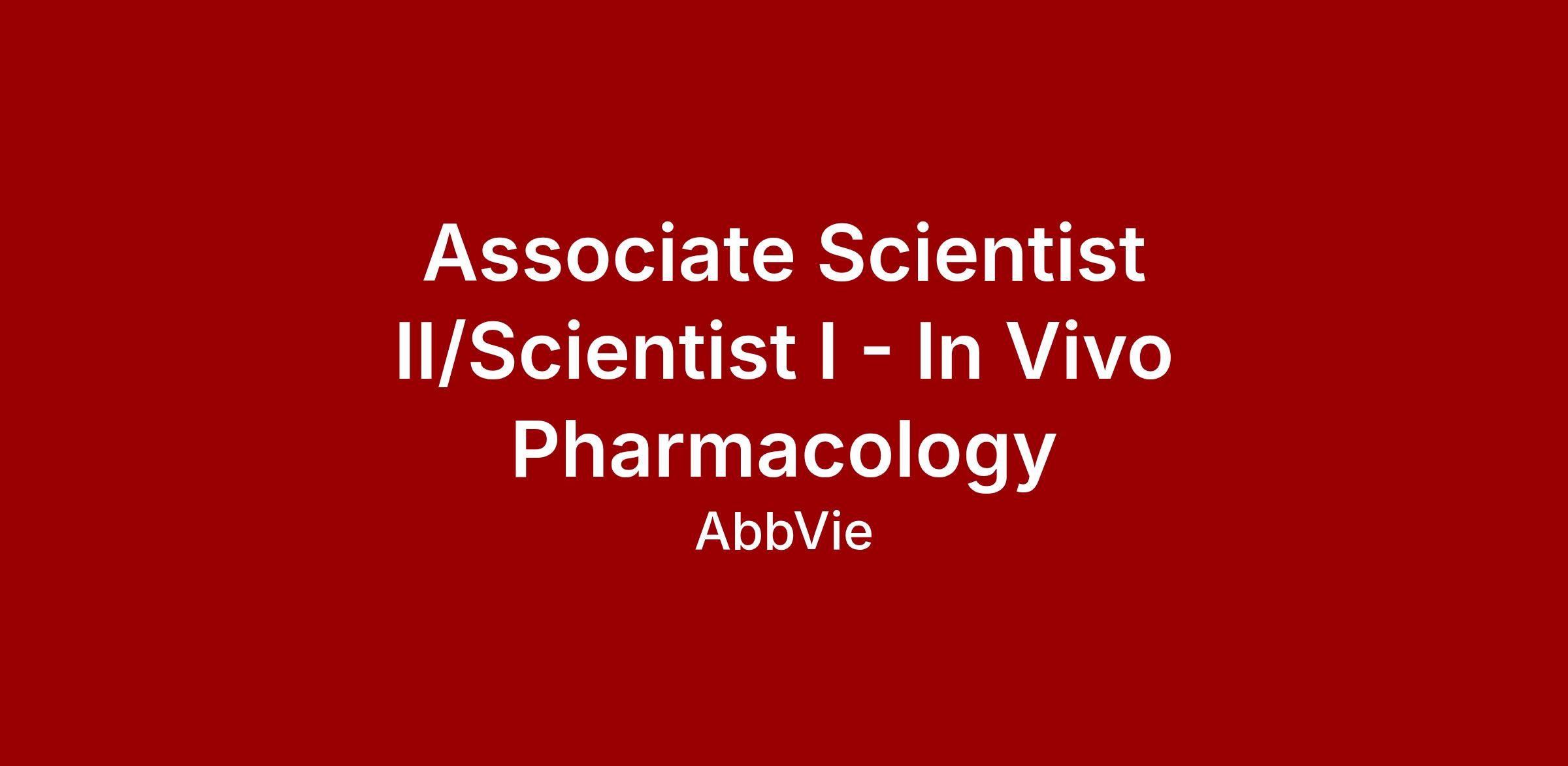 Associate Scientist II/Scientist I - In Vivo Pharmacology