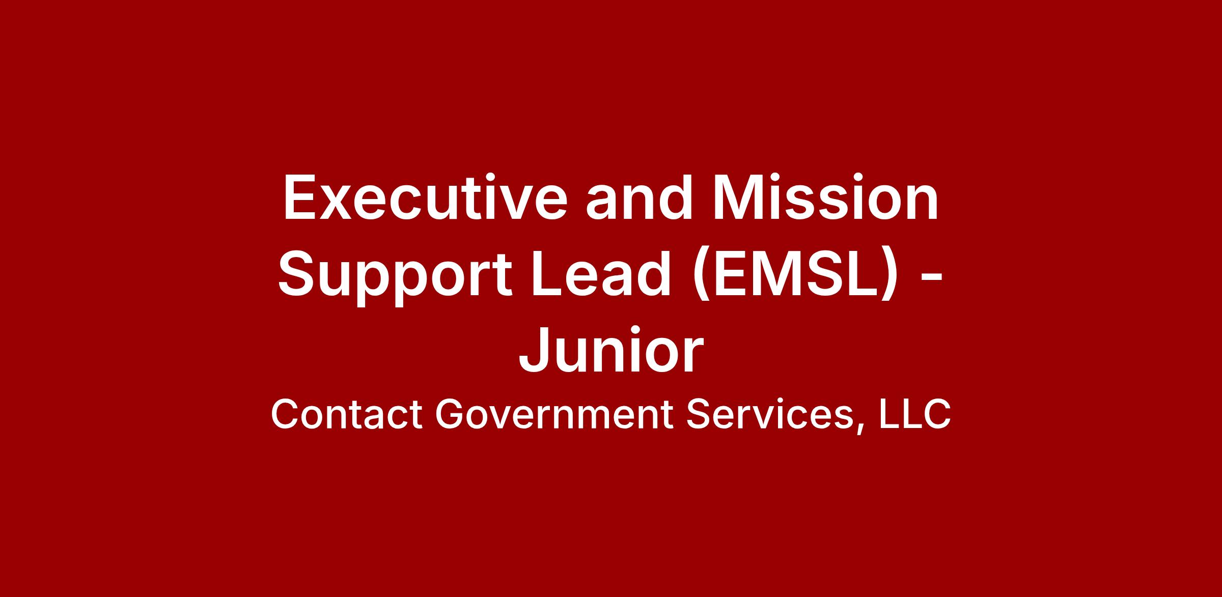 CGS is seeking a skilled Executive and Mission Support Lead (EMSL) – Junior to support mission-critical operations for a federal client.