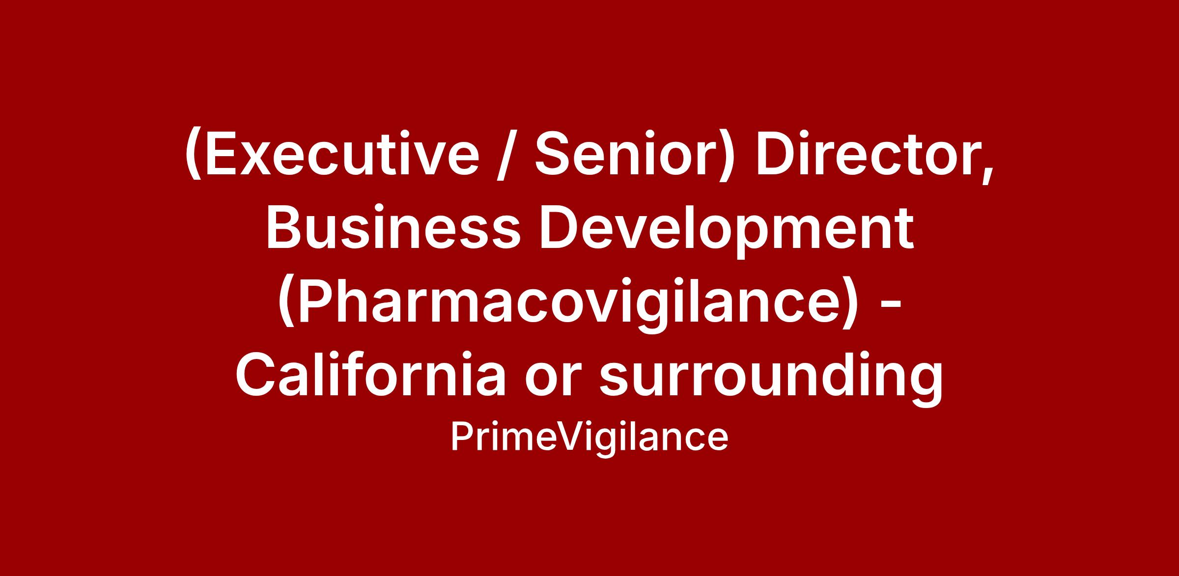 (Executive / Senior) Director, Business Development (Pharmacovigilance) - California or surrounding