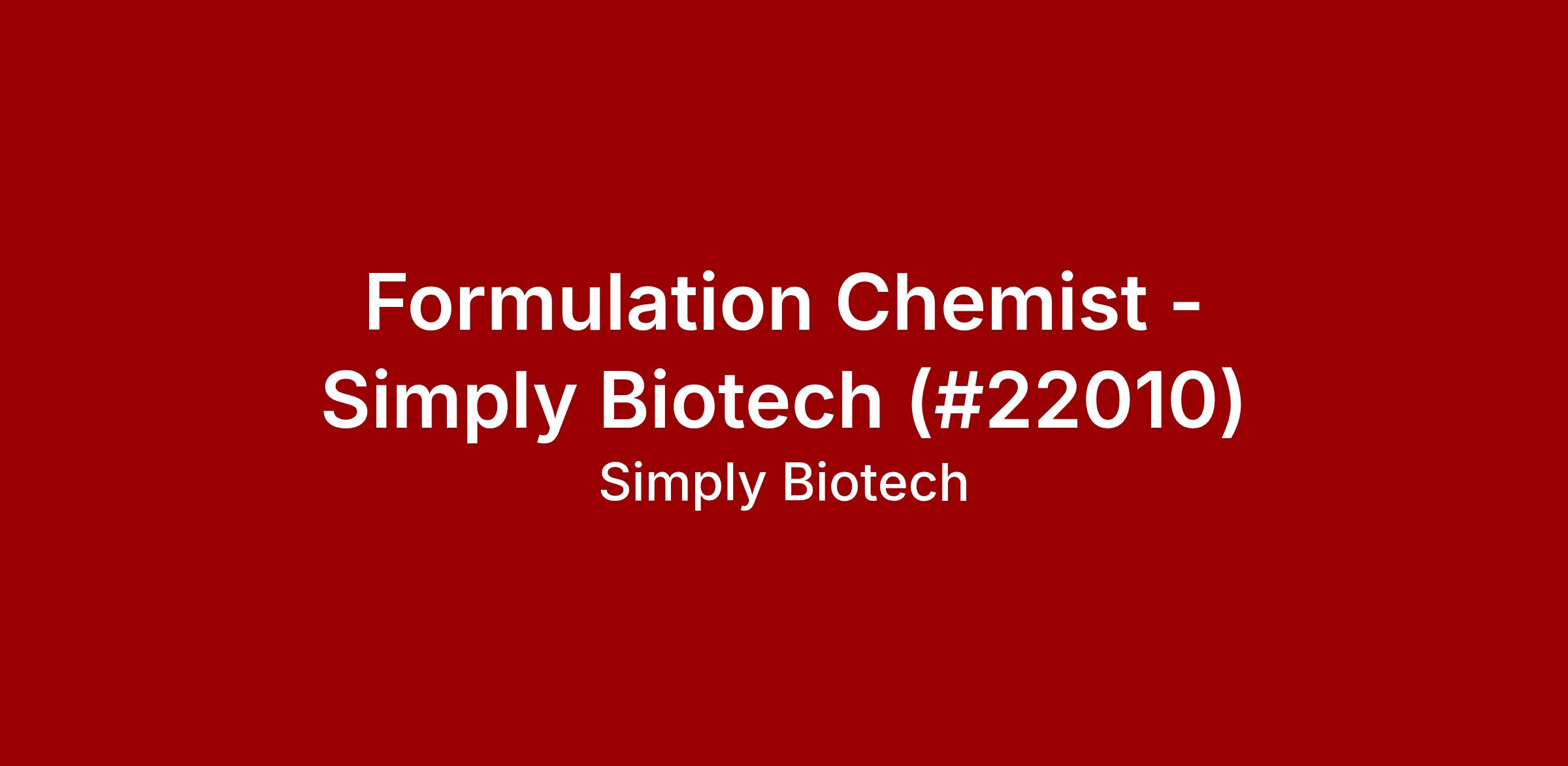 Formulation Chemist - Simply Biotech (#22010)