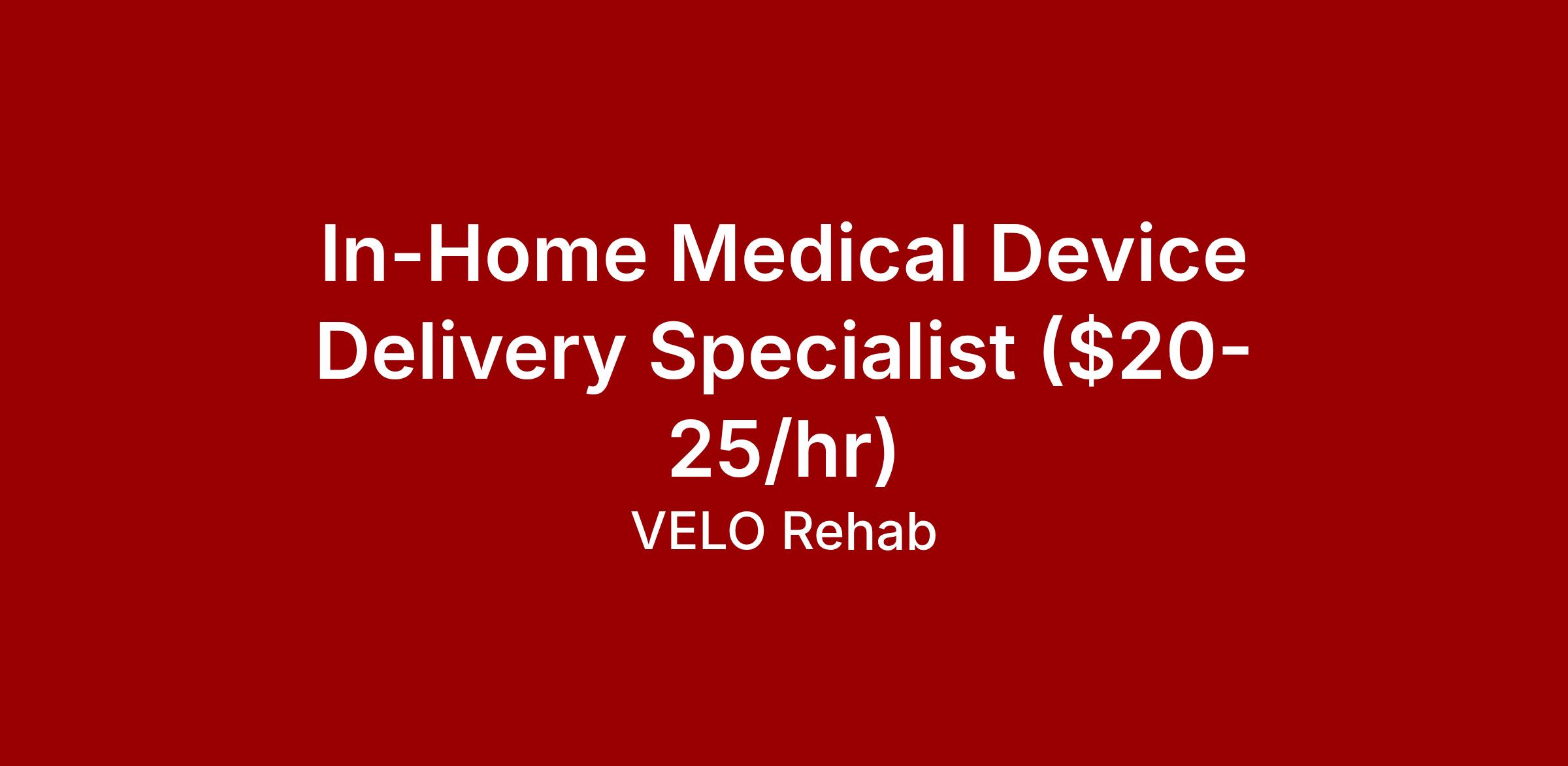 We deliver rehabilitation devices to patients' homes after surgery. The job is to pick up the device, drive it to the patient's home, set it up, and walk them through their first session. The device weighs about 62 lbs.