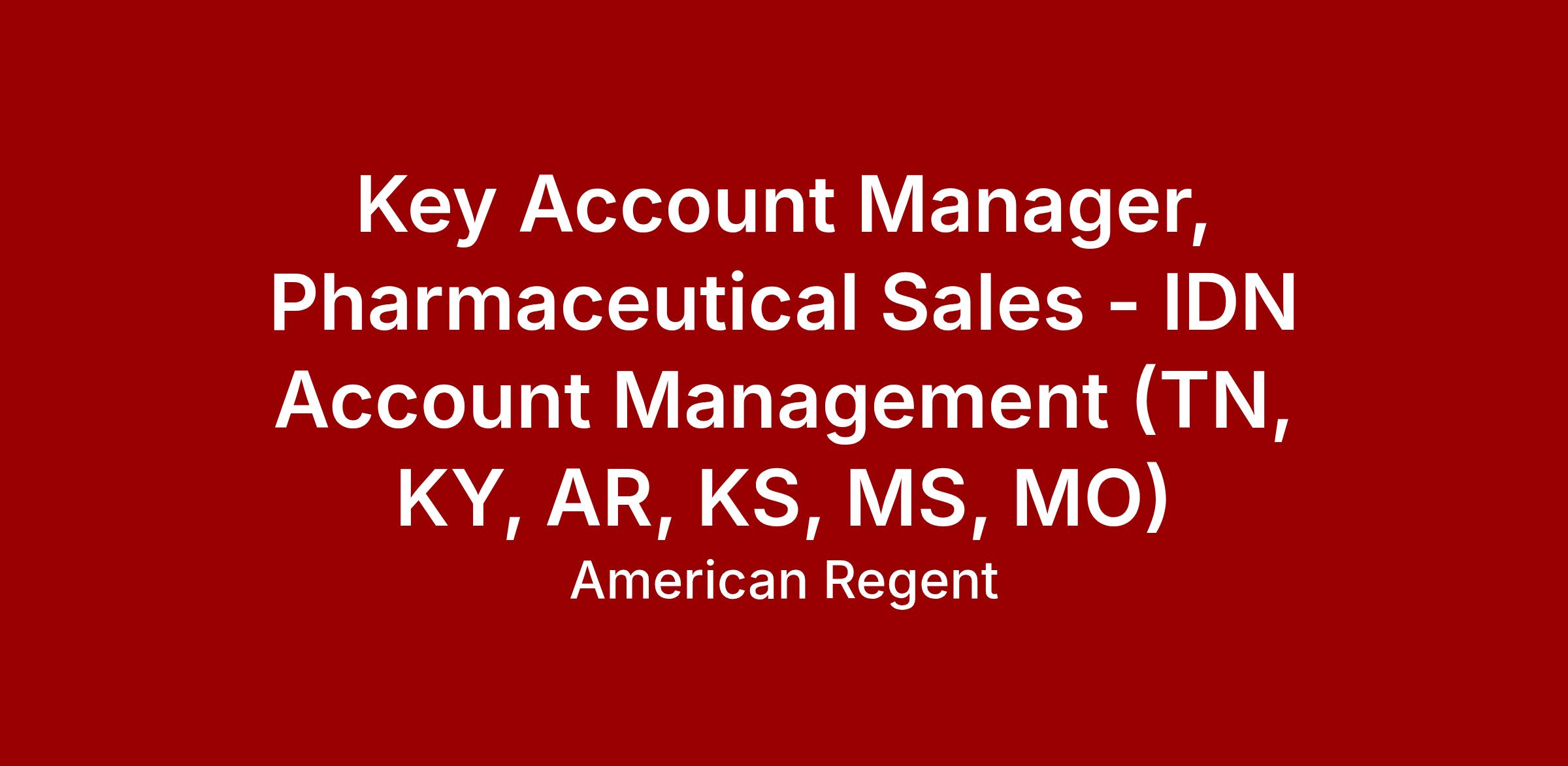 The Key Account Manager (KAM) is responsible for access to the Multisource product line with Integrated Delivery Networks (IDNs) in their region of the country and will also work closely with affiliated [hospitals]. KAMs will report directly to the Regional Managers and will play a critical role in the implementation of the sales and contracting strategy. Must reside in covered territory of KY, TN, AR, KS, MS, MO. Travel up to 50-60%.