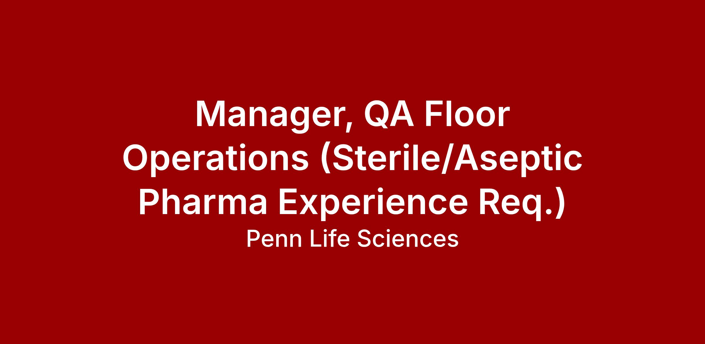 - Prior experience leading or managing QA Operations or QA floor teams in a sterile environment.