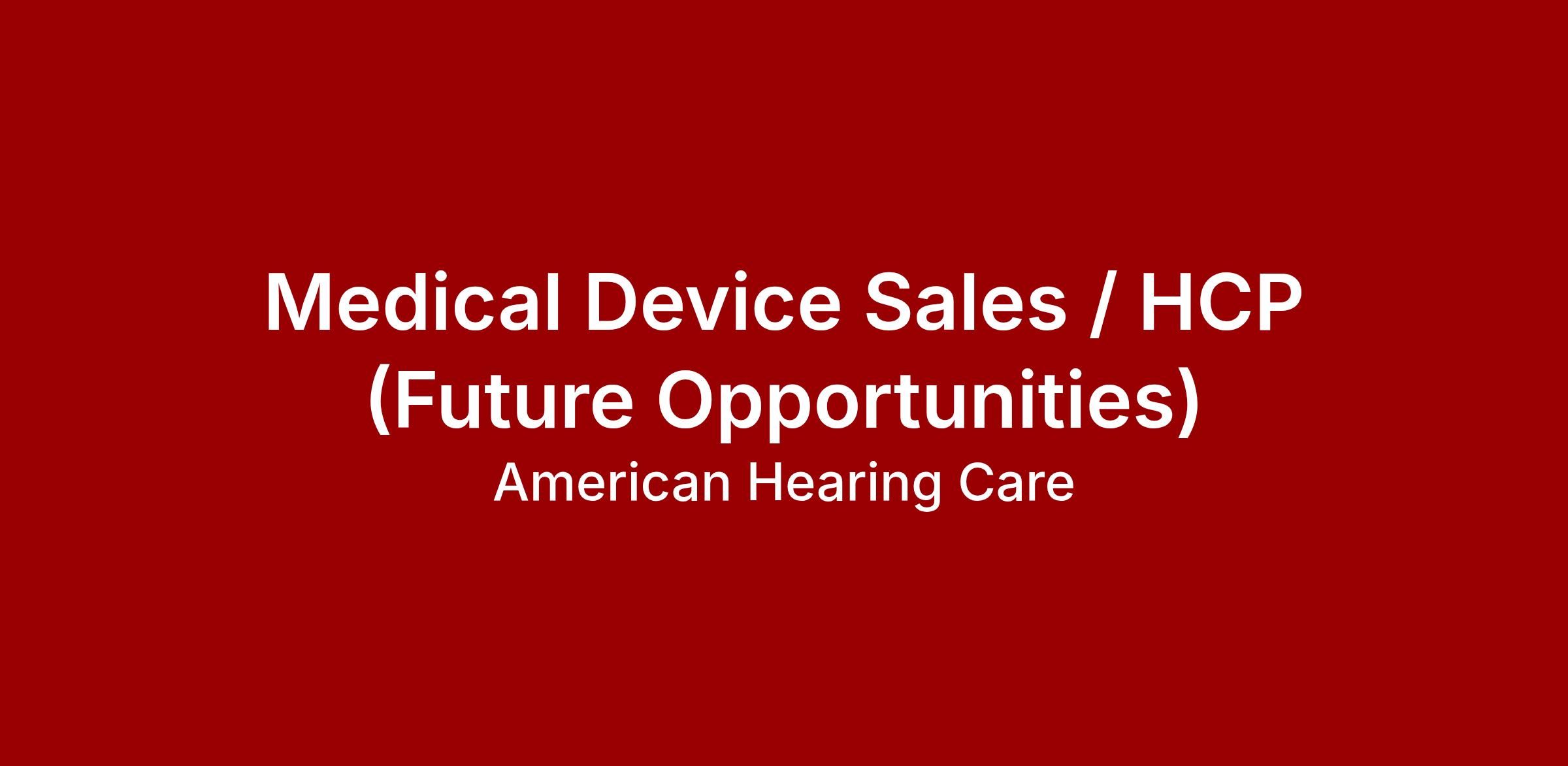 Medical Device Sales / HCP (Future Opportunities)
