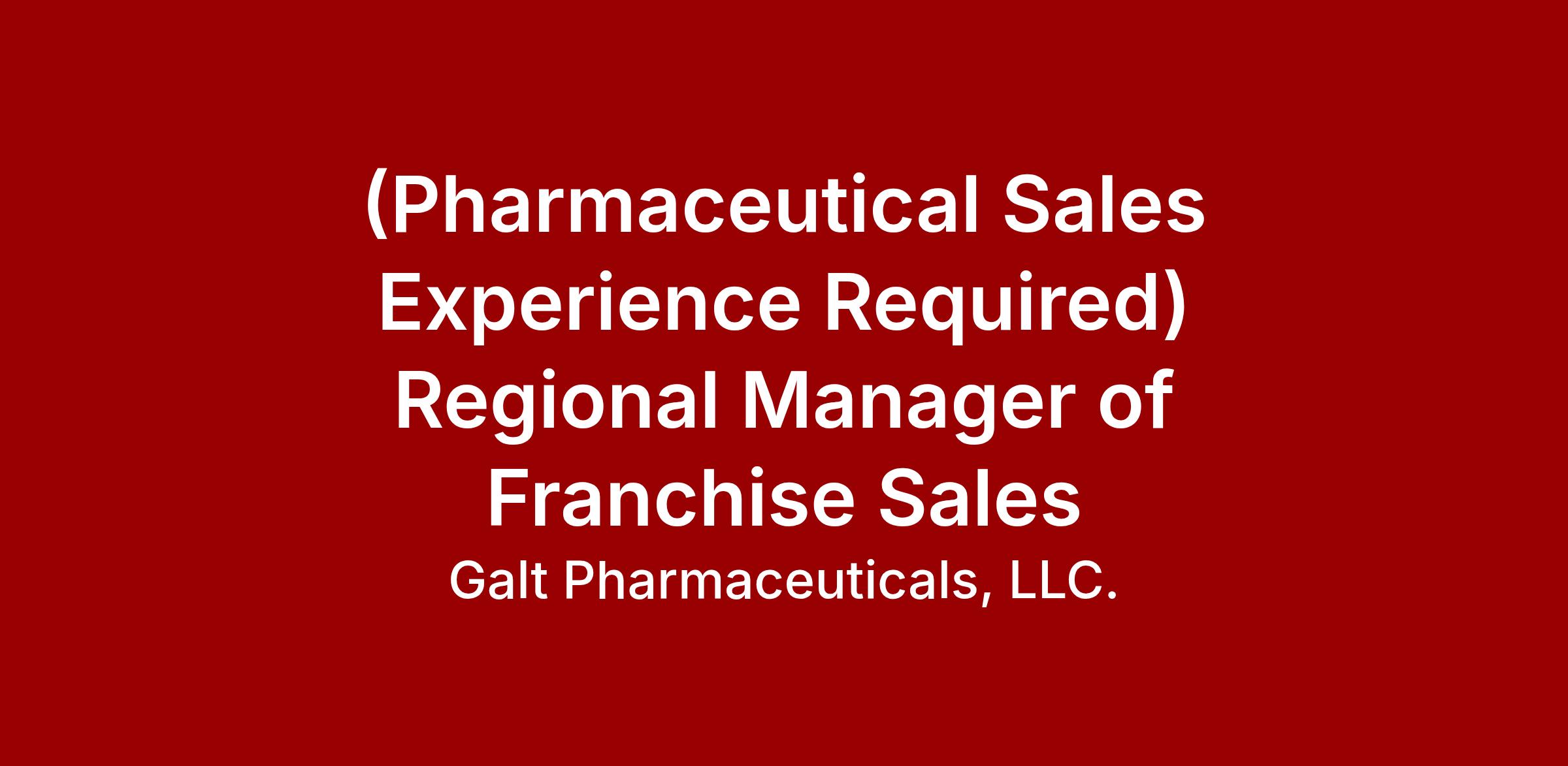 (Pharmaceutical Sales Experience Required) Regional Manager of Franchise Sales