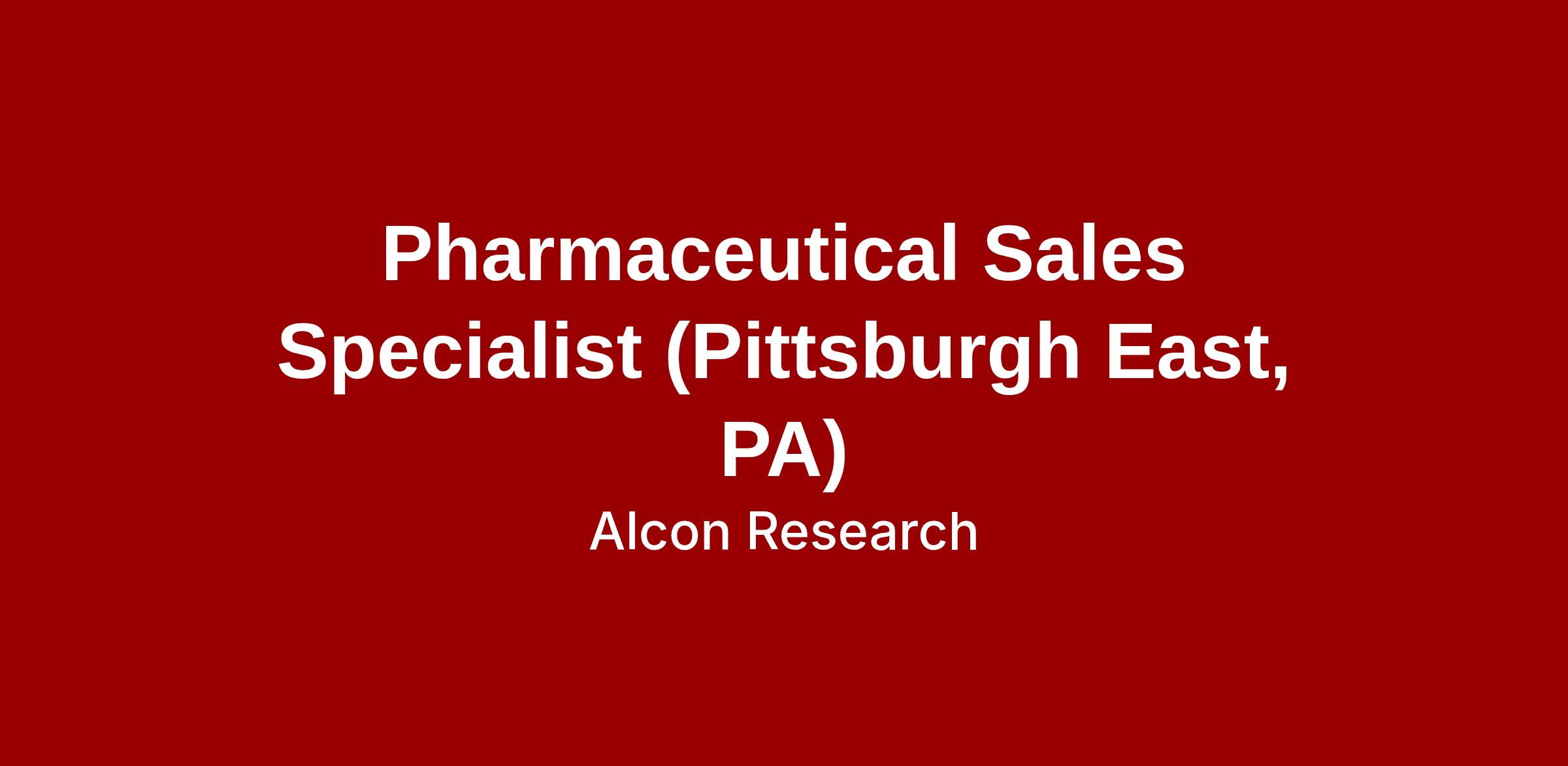 We foster an inclusive culture and are looking for diverse, talented people to join Alcon. As a Sr. Associate, Pharmaceutical Sales one will be responsible for covering a large territory and will focus on a defined target list of physicians/practitioners within the territory. One will also assure the needs of all partners are met within compliance guidelines while developing relationships and maintaining an active presence in the pharmaceutical community or associated organizations throughout the territory area of Pittsburgh East, PA