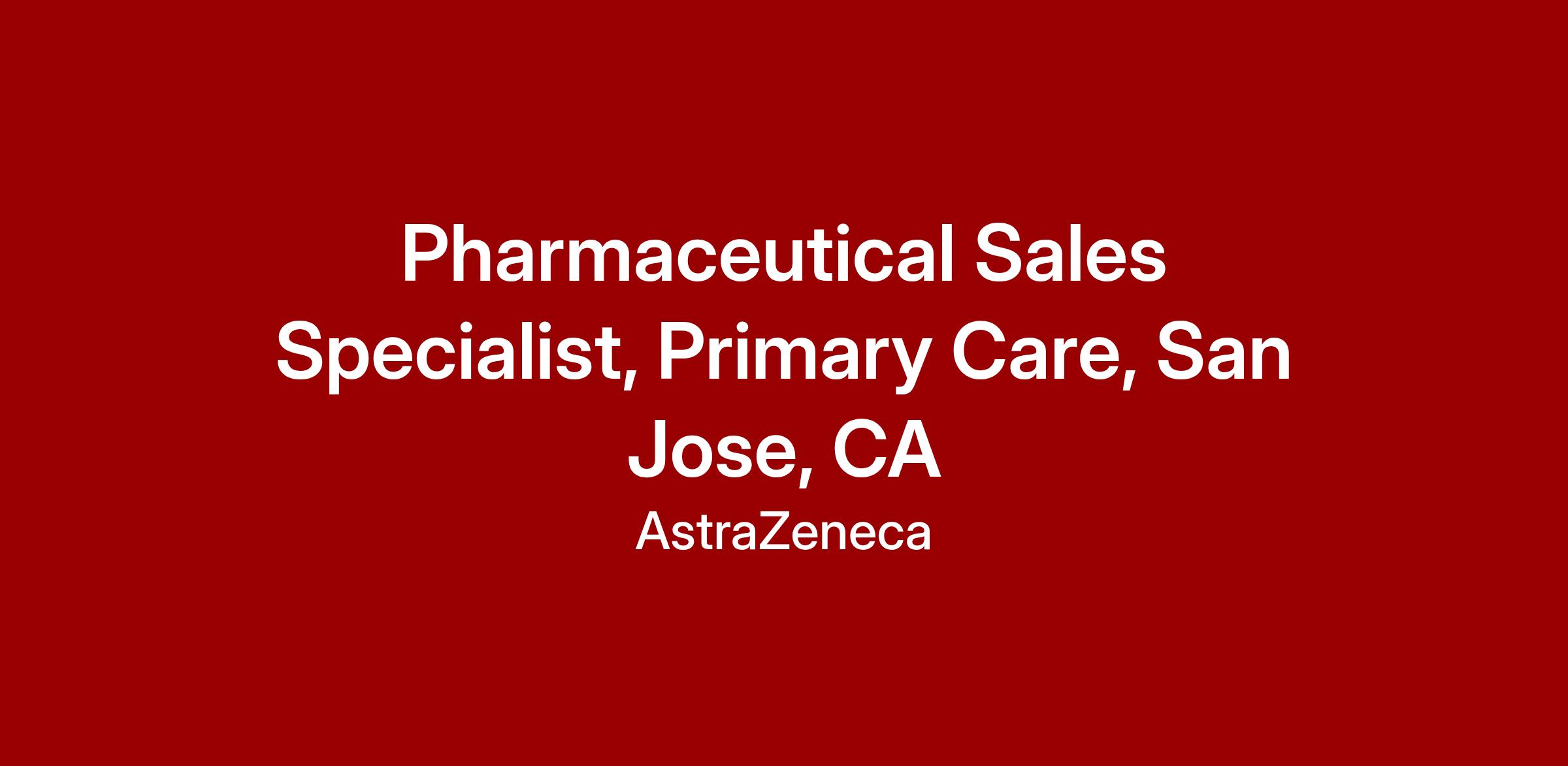 Pharmaceutical Sales Specialist, Primary Care, San Jose, CA