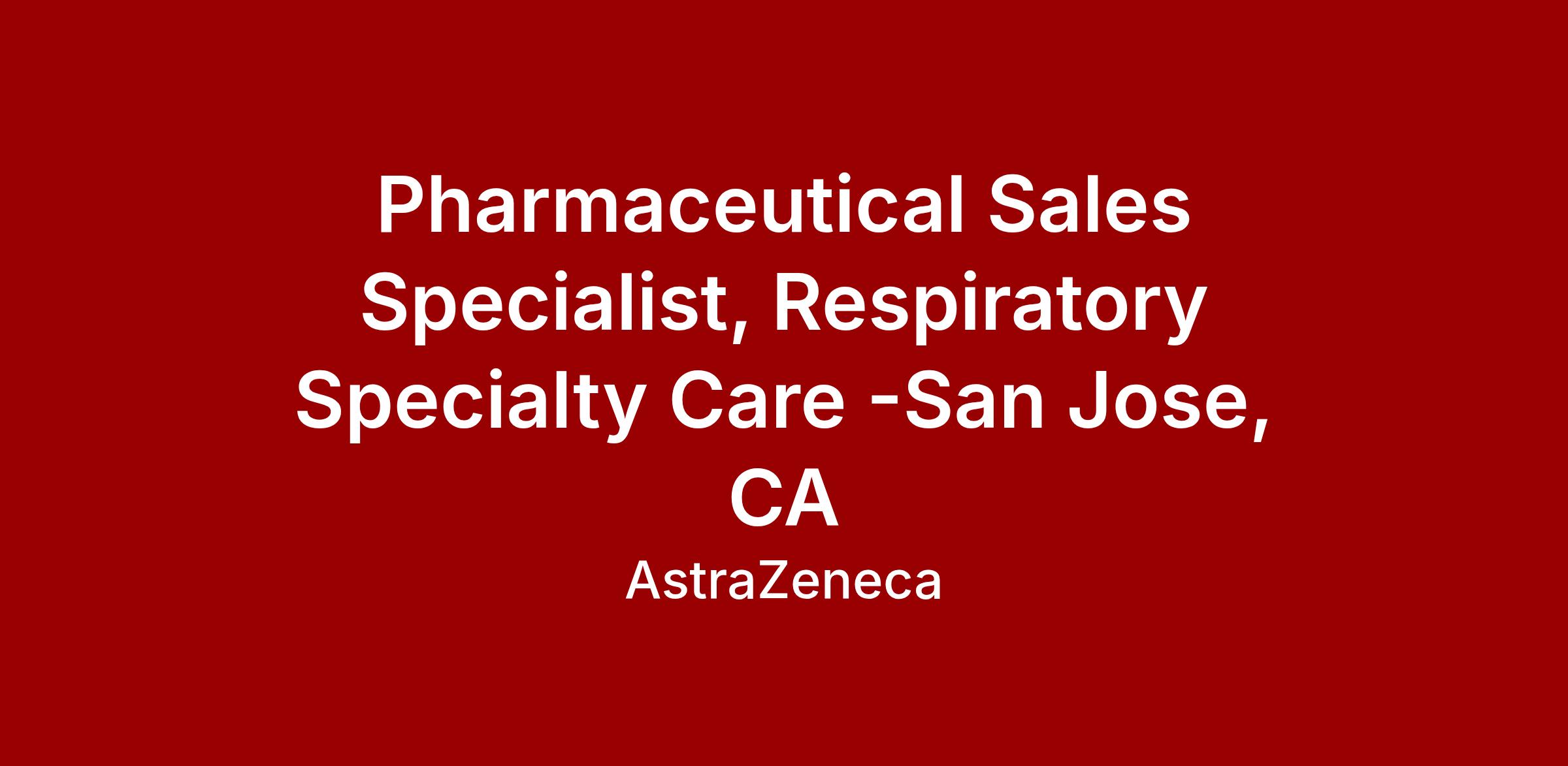 Pharmaceutical Sales Specialist, Respiratory Specialty Care - San Jose, CA
