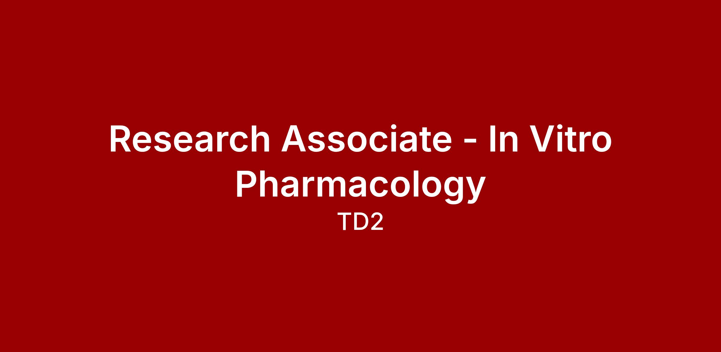 Position Summary:The TD2 Research Associate - In Vitro Pharmacology is involved in many aspects of laboratory operations primarily tissue culture activities, various cell-based assays, and molecular biology experiments. This position requires great attention to detail while working in a deadline-driven environment.
