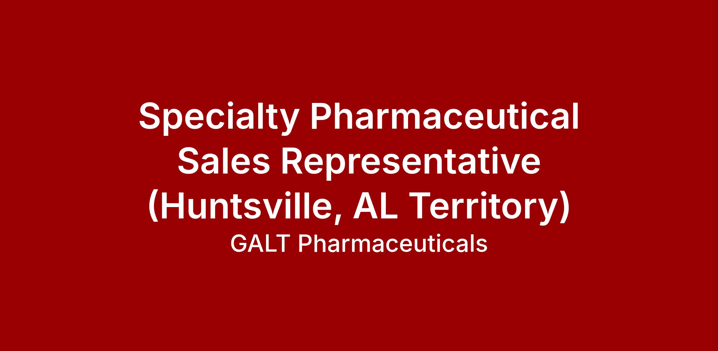Specialty Pharmaceutical Sales Representative (Huntsville, AL Territory)