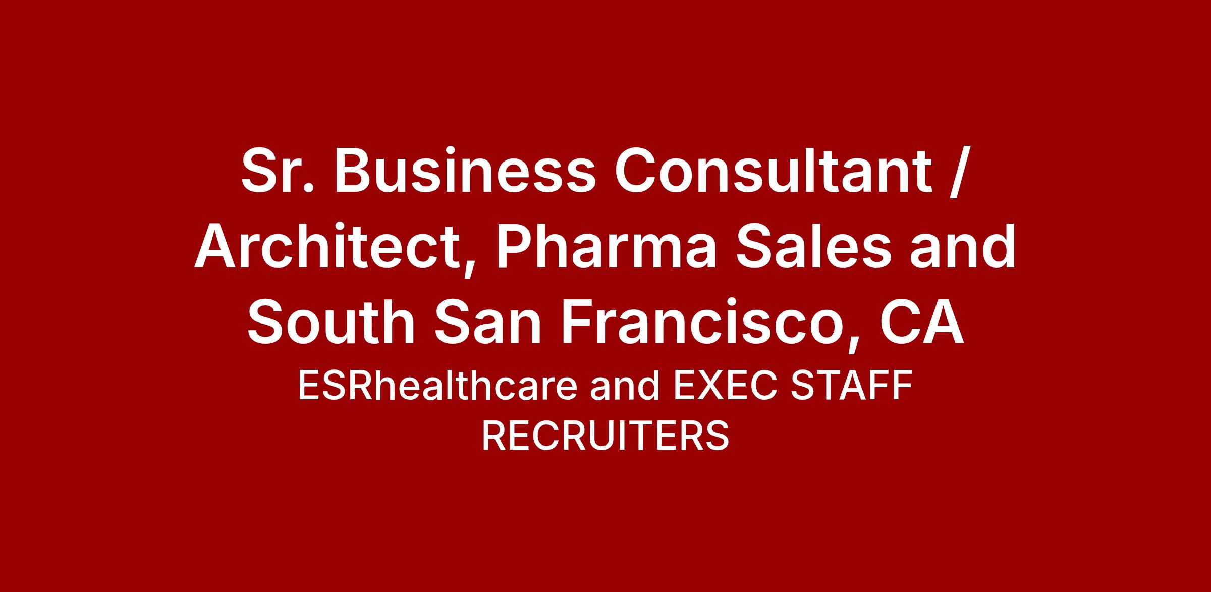 Sr. Business Consultant / Architect, Pharma Sales and South San Francisco, CA - Onsite / Hybrid