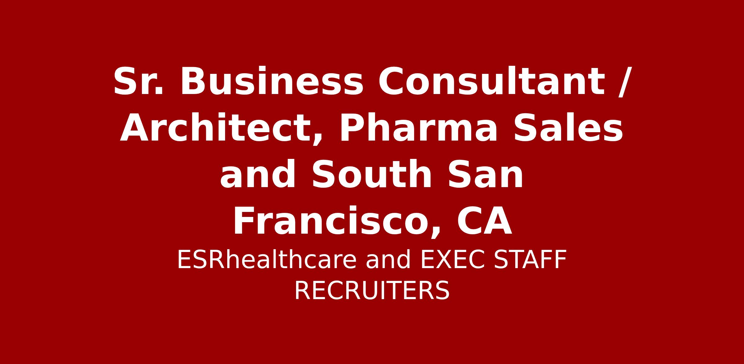 Sr. Business Consultant / Architect, Pharma Sales and South San Francisco, CA - Onsite / Hybrid