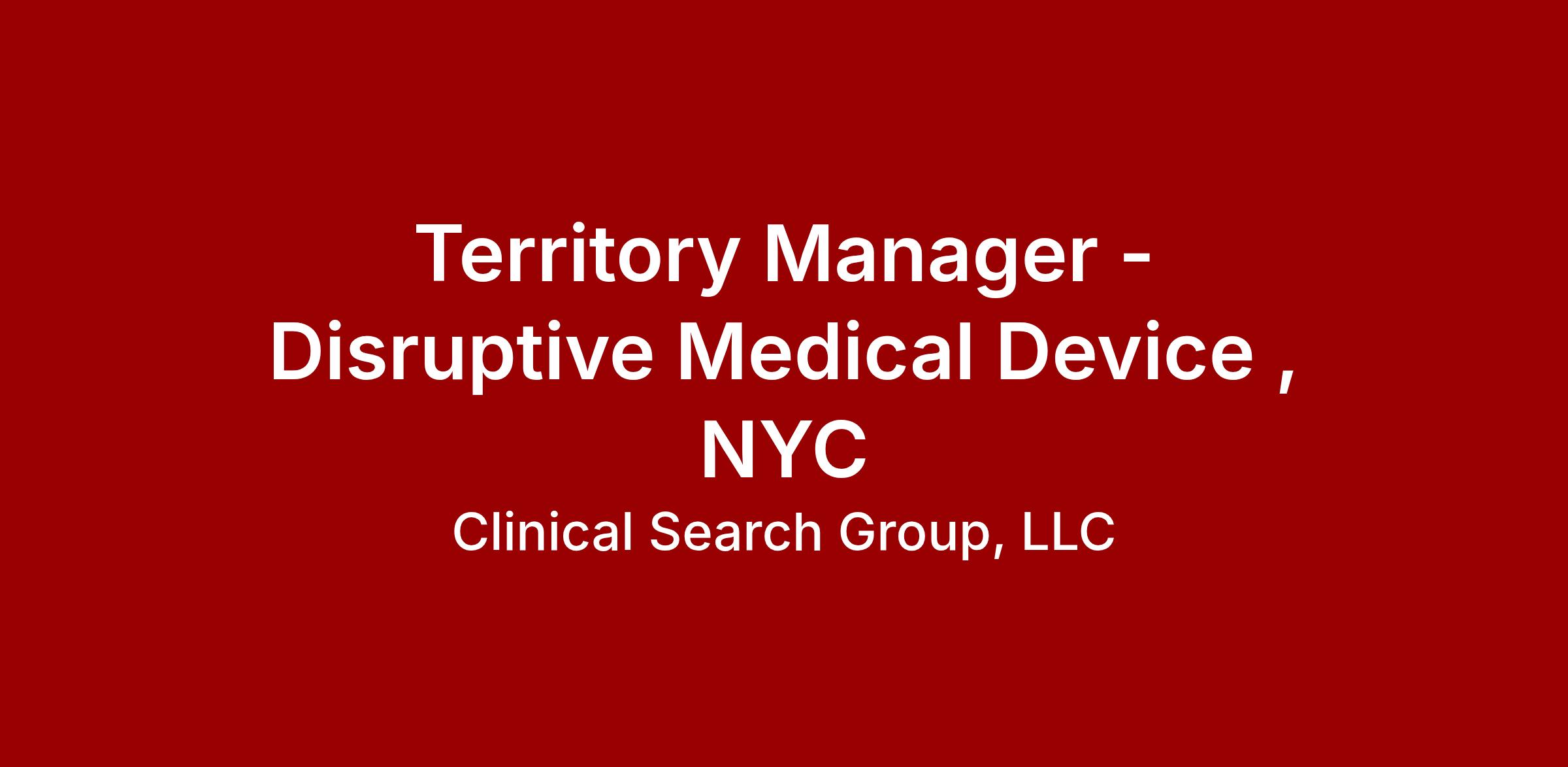 Territory Manager - Disruptive Medical Device , NYC